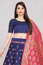 Fabcartz Solid Semi Stitched Lehenga Choli (Pink, Dark Blue)