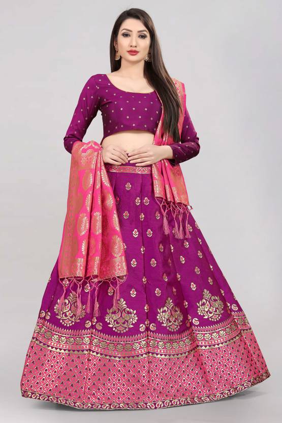 Fabcartz Solid Semi Stitched Lehenga Choli (Purple)
