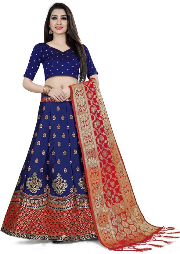 Fabcartz Solid Semi Stitched Lehenga Choli (Red, Blue)