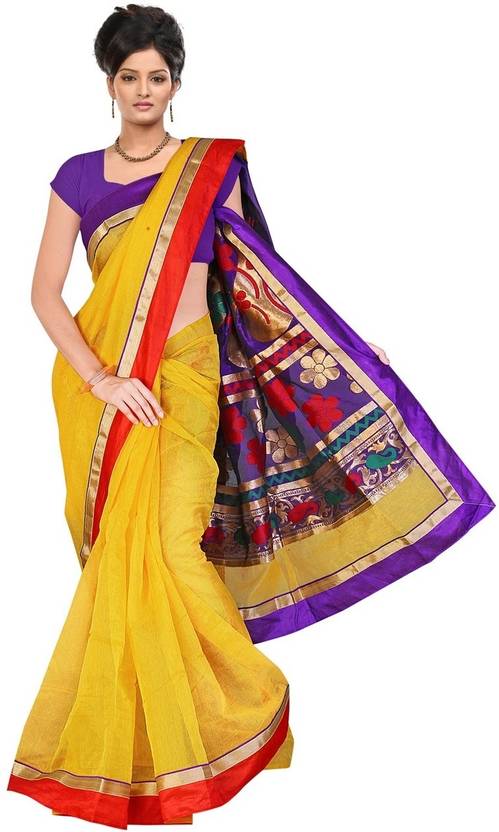 Immense change in fashion can be experienced by draping this marvelous collection. The saree is embossed in yellow in color with an appealing Manipuri silk fabrication. One should get going with unique piece for stunning getup like never before.