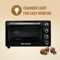 You can try out new recipes and cuisines in the Faber 34 L Oven-toaster-grill. With its robust body and capacity of up to 34 L, this OTG is an ideal choice for large families. Thanks to its chamber light, this OTG allows you to watch the appetising dishes while they cook. And, it has an Auto Shut-off mode that automatically switches off the appliance after cooking and notifies you when it is done, so that you won't need to watch it constantly.