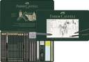 FABER-CASTELL 7 x Castell 9000 graphite pencils (2H, 2B, B, HB, 4B, 6B, 8B), 3 x Castell 9000 Jumbo graphite pencils (2B, 4B, 8B) , 3 x Graphite Aquarelle pencils, water-soluble (2B, 4B, 8B), 3 x Pitt graphite Pure pencils (3B, 6B, 9B) 3 x Pitt graphite crayons (6B, 9B), 1 x Perfection eraser pencil ,1 x Plastic eraser, 1 x Kneadable art eraser, 1 x Dual sharpener, 1 x Blending stump, 1 x Sandpaper block, 1 x Paintbrush Pencil (Pack of 26)