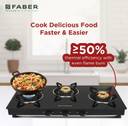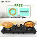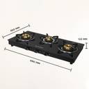 FABER Daisy Pro 3BB BK|Powder Coated Pan Support |Manual Ignition|Brass Burners| Glass Manual Gas Stove (3 Burners)