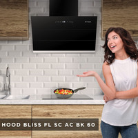 FABER HOOD BLISS FL SC AC BK 60 Auto Clean Slant Glass 60 cm| Touch & Gesture Control| Autoclean| Filterless|Powerful Suction|Low Noise Wall Mounted Black 1350 CMH Chimney