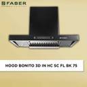 FABER HOOD BONITO 3D IN HC SC FL BK 75 Auto Clean T-Shape 75cm| Touch & Gesture Control| Autoclean| Filterless|Powerful 3 Way Suction| Low Noise Wall Mounted BLACK 1250 CMH Chimney
