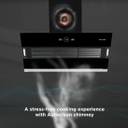 You can ensure the effective elimination of smoke and oil particles from your cooking space with the Faber Hood Vertigo FL SC AC BK 60 cm Chimney. Incorporating filterless technology, this chimney is crafted without filtration components, ensuring convenient cleaning. And, this design leads to a user-friendly, low-maintenance chimney. Additionally, this chimney includes an inbuilt motor that facilitates the smooth flow of air and smoke. Moreover, equipped with a motion sensor, this chimney can discern and interpret human gestures, enabling interactive functions.