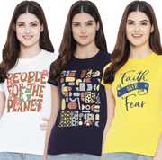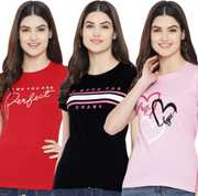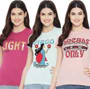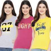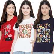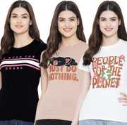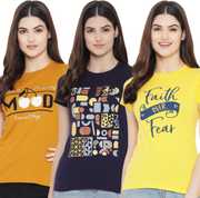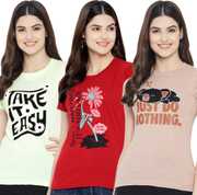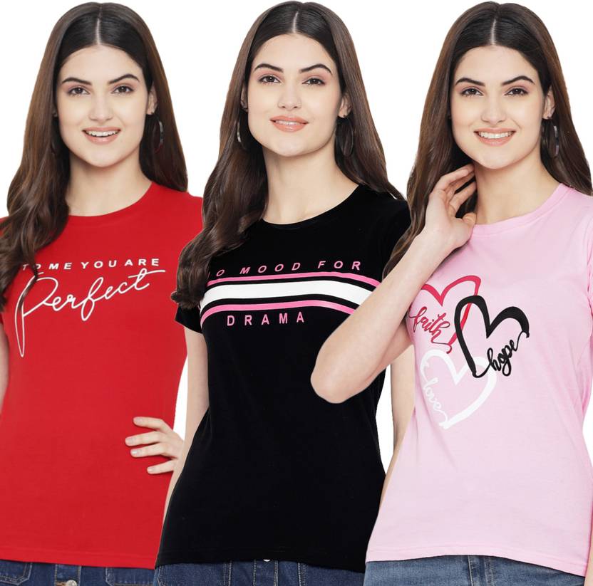 Fabflee Printed Women Round Neck Multicolor T-Shirt
