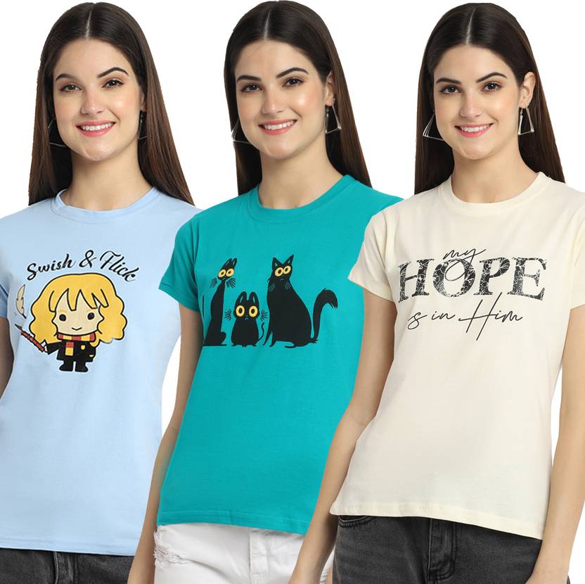 Fabflee Printed Women Round Neck Multicolor T-Shirt