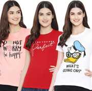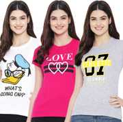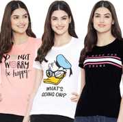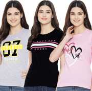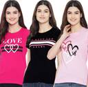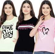 Fabflee Printed Women Round Neck Pink, Black T-Shirt