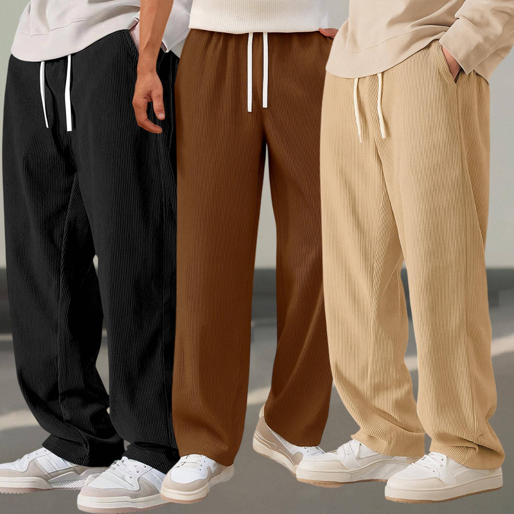 Upgrade your wardrobe with these Menโ€™s Corduroy Loose Fit Casual Trousers โ€“ the perfect blend of comfort and style. Crafted from high-quality corduroy fabric, these trousers are soft, breathable, and built to last. The baggy straight fit design ensures a modern and trendy look while providing unmatched comfort. Featuring an adjustable drawstring waist, it offers a secure fit for every occasion. Perfect for casual outings, office wear, travel, or lounging, these trousers are versatile and can be paired effortlessly with t-shirts, sweatshirts, or hoodies. A must-have addition to every manโ€™s collection.