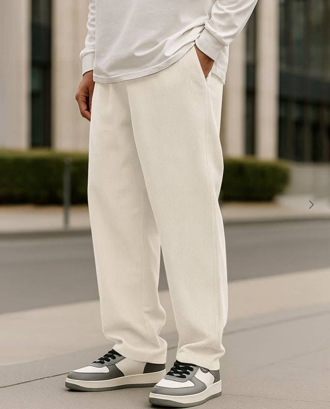 FABFLEE Self Design Men White Track Pants