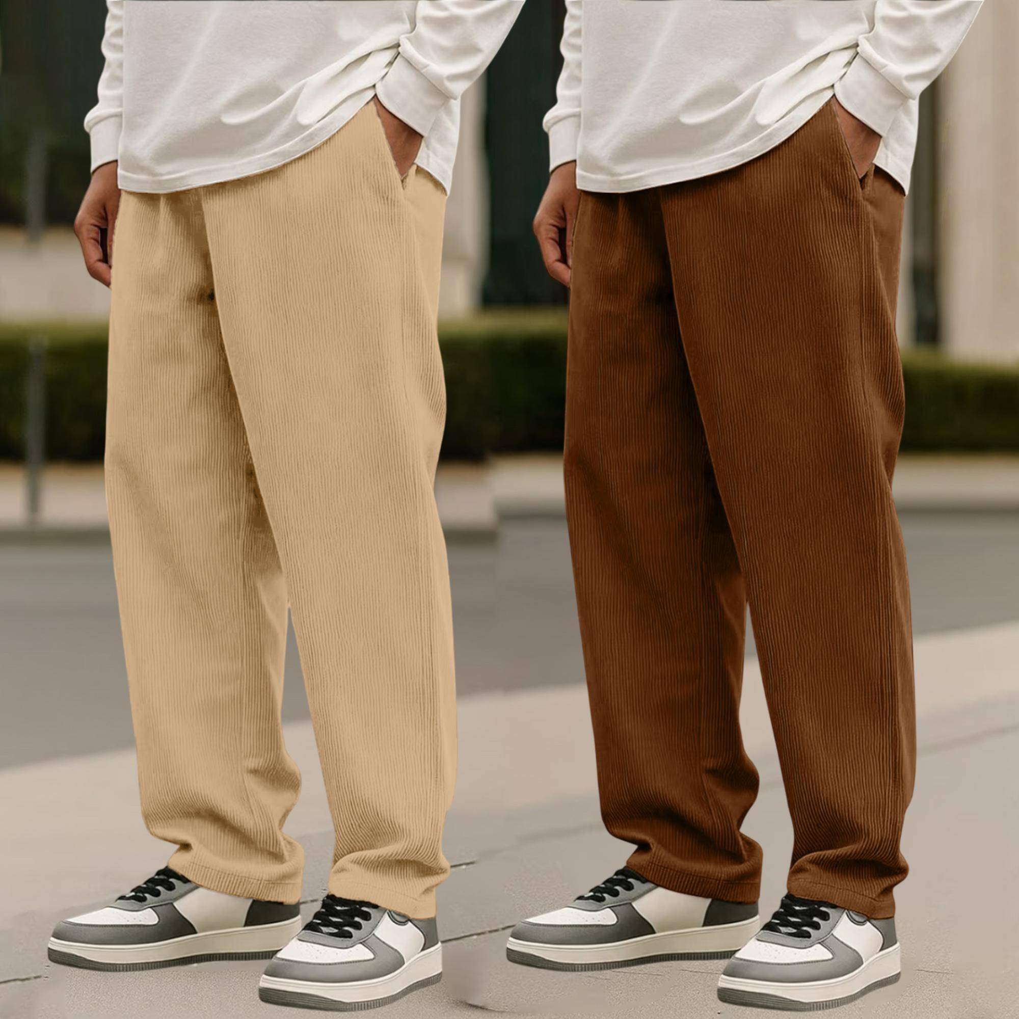 FABFLEE Solid Men Beige, Brown Track Pants