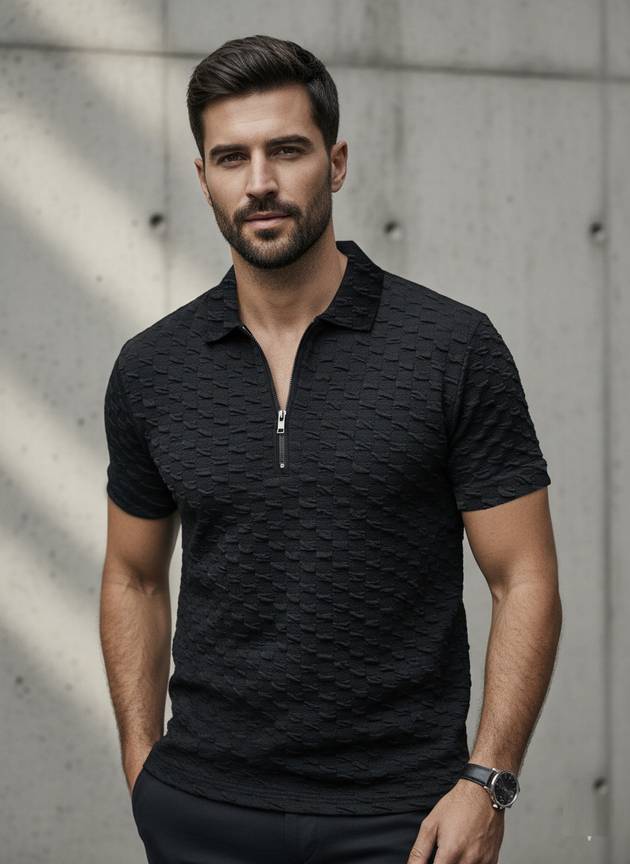 Upgrade your wardrobe with this Men's Premium Half-Zip Polo T-Shirt. Crafted from high-quality, breathable fabric, it offers unmatched comfort and style. The half-zip collar adds a contemporary twist to the classic polo design, making it perfect for casual meetups, evening parties, or smart-casual office days. Pair it with jeans, chinos, or shorts for an effortlessly stylish look. Designed for the modern man who values both fashion and comfort.