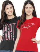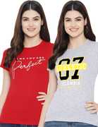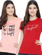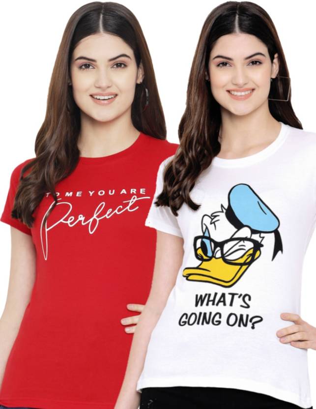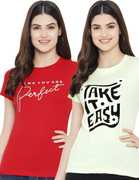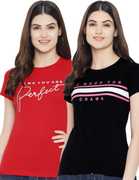 Fabflee Typography Women Round Neck Red, White T-Shirt