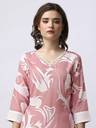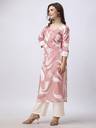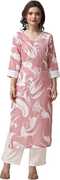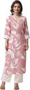 Fab Galaxy Viscose Rayon Long Printed Kurti Set For women with Palazzo Set in White and Mauve Color Kurta Set with designer Lace pattern on neck.