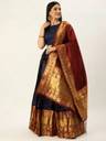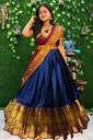 South Indian Haf Sarees Unstitched Blue Color Jcard Narayan Pattu Lehenga For Women Pure Soft Silk Lehenga Choli With Maroon Dupatta