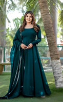 Boasting a solid pattern, this women's Anarkali gown presents a clean and unified look. The absence of prints or motifs highlights the silhouette itself, drawing attention to its natural flow. Furthermore, the solid pattern brings a sense of quiet elegance, offering a timeless aesthetic rooted in simplicity.