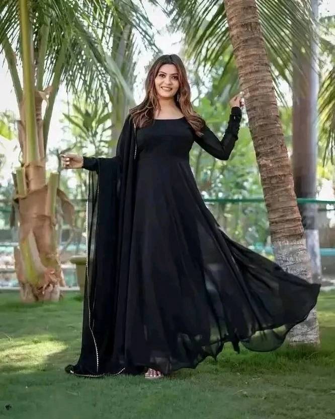 Self Design Georgette Stitched Anarkali Gown (Black)