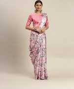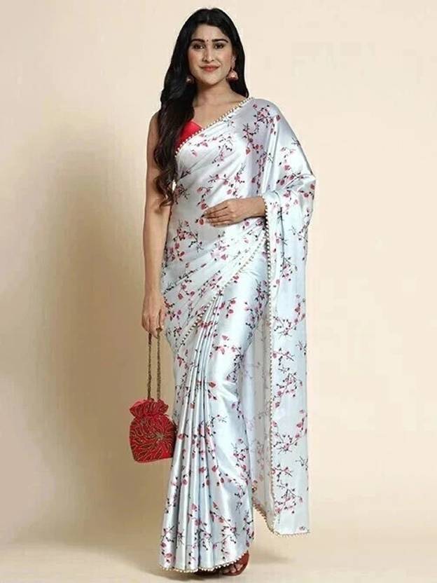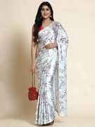 Japan Satin Digital Floral Grey Printed Saree with Blouse Piece