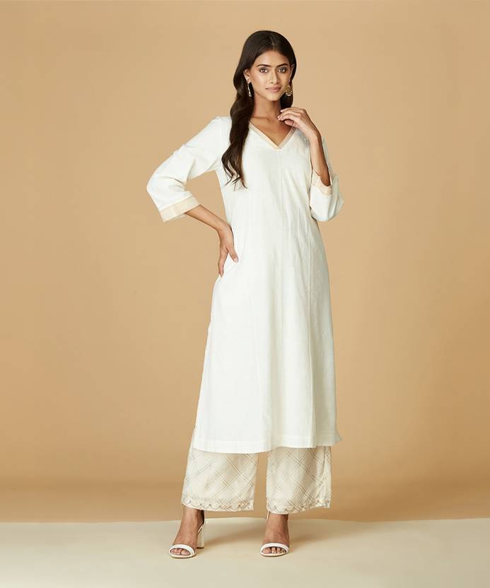 Fabindia Women Printed Pure Cotton Straight Kurta (White)