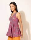 Fabindia Women Printed Pure Cotton Flared Kurta (Purple)