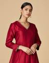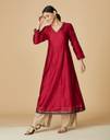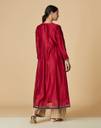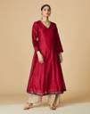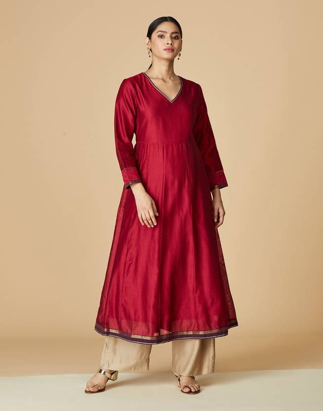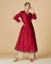 Women Woven Design Cotton Silk Flared Kurta (Pink)