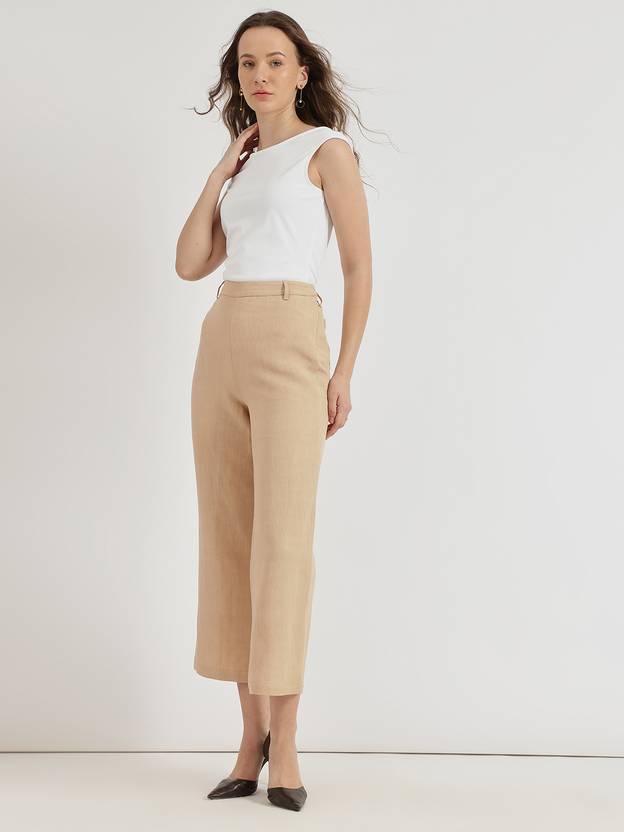 Wide leg- Mid-rise- Elasticated waistband- 2 back patch pocket- Side zip- Ankle length- Linen- Breathable- Lightweight- Soft on skin- Non-transparent
