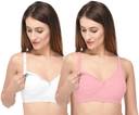 Fabme Po2-BR0243PK-WH Women Maternity/Nursing Non Padded Bra (Pink, White)
