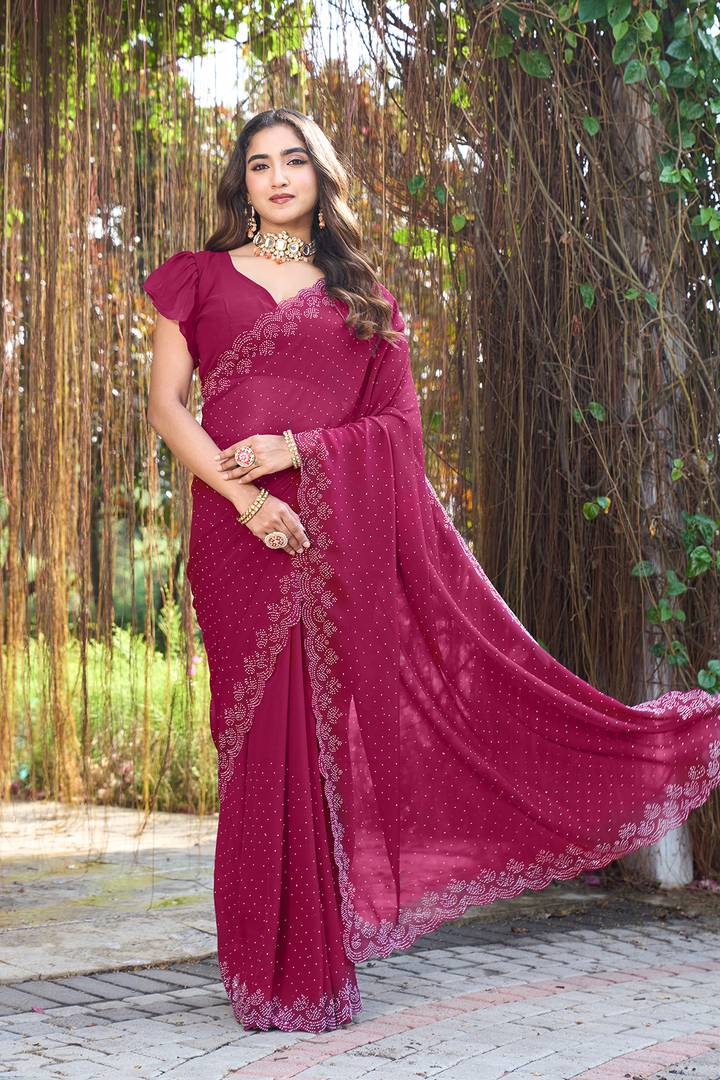 Solid/Plain Bollywood Georgette Saree (Pink)