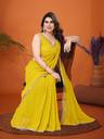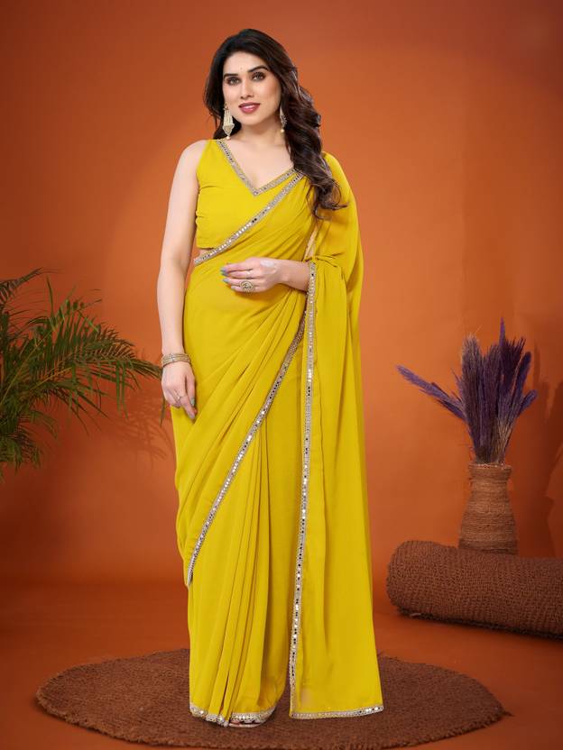 Solid/Plain Bollywood Georgette Saree (Yellow)