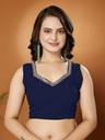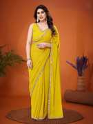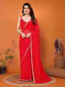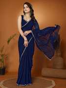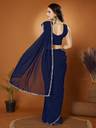 FABMORA Solid/Plain, Embellished Bollywood Georgette Saree (Dark Blue)