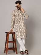 Upgrade your wardrobe with the FABRIC FITOOR Men's Cotton Floral Print Full Sleeves Kurta—a perfect blend of style, comfort, and functionality. Crafted from high-quality cotton, this knee-length kurta offers excellent breathability, making it ideal for festive occasions, casual outings, or daily wear. The elegant floral print adds a modern touch to traditional attire, while the two functional pockets provide practicality for carrying essentials. With full sleeves and a comfortable fit, this kurta ensures you look sharp and feel relaxed all day long. Pair it with denim, churidars, or pajamas for a complete ethnic look that suits any occasion. Whether it’s a festival, family gathering, or casual meet-up, this versatile kurta keeps you looking effortlessly stylish.