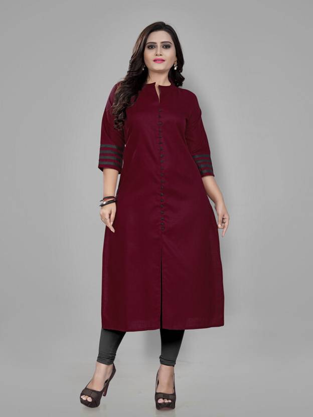 Fabriza Women Solid Cotton Blend A-line Kurta (Maroon)