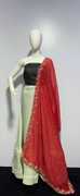 Elegant maroon chiffon dupatta adorned with delicate golden floral embroidery. The dupatta features scattered small golden motifs across the fabric, adding a subtle charm, while the border is beautifully highlighted with intricate golden threadwork in a floral pattern. Lightweight, soft, and stylish, this dupatta is perfect for pairing with ethnic outfits, festive occasions, or weddings to add a graceful touch