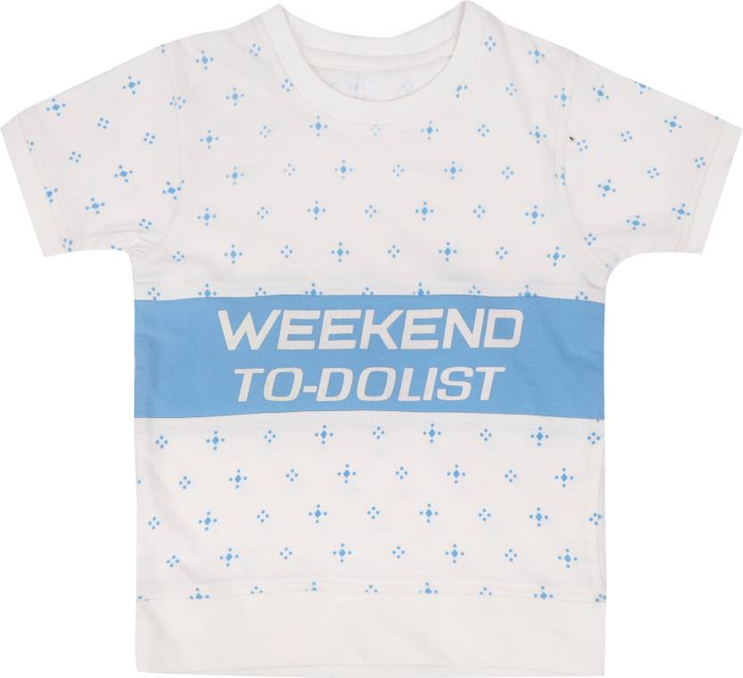 Baby Boys Typography, Printed Pure Cotton Regular T Shirt (White, Pack of 1)