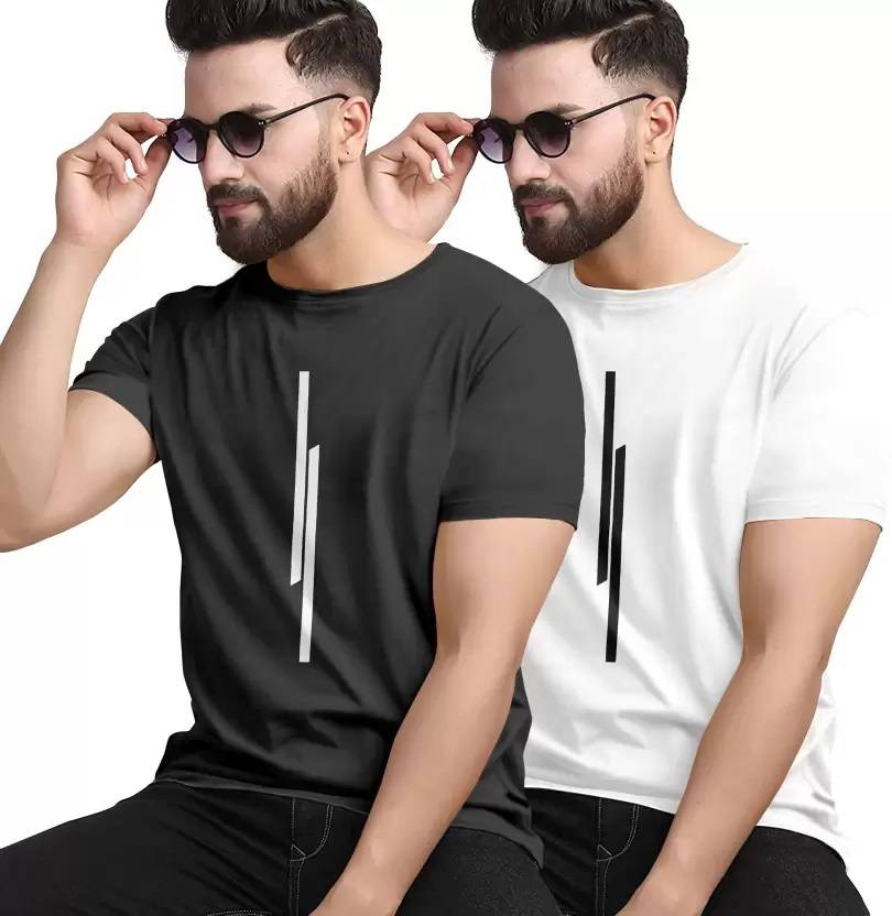 Pack of 2 Men Striped Round Neck Polyester Multicolor T-Shirt