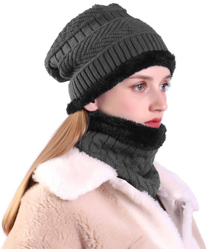 UNIQUELY KNITTED – Constructed with simple and fashion Knit style which is made of one layer of Thick Knitting fabric and one more layer of soft and warm Fux Fur line, FabSeasons Beanie / Skull caps & Muffler Combo is perfectly suitable for Winter to keep you warm and comfortable.