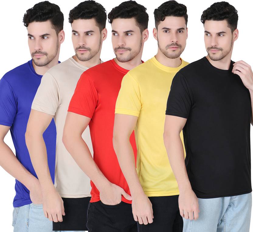FABSHORE Pack of 5 Men Solid Round Neck Polyester Multicolor T-Shirt