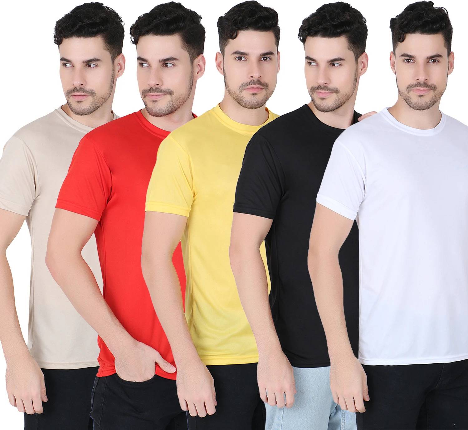 FABSHORE Pack of 5 Men Solid Round Neck Polyester Multicolor T-Shirt