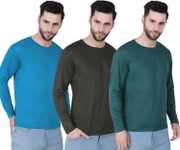 FABSHORE Pack of 3 Men Solid Round Neck Polyester Multicolor T-Shirt