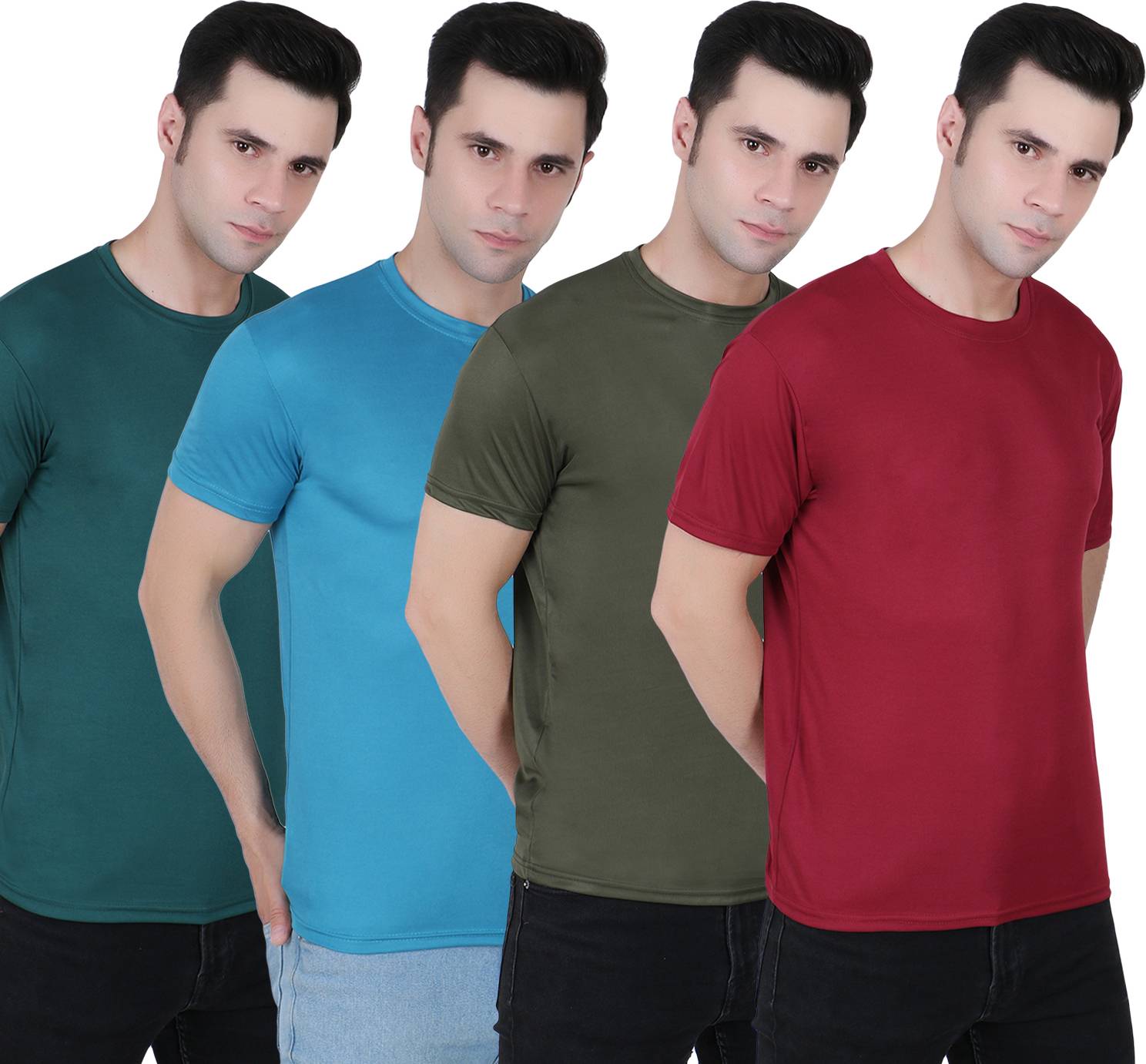 FABSHORE Pack of 4 Men Solid Round Neck Polyester Multicolor T-Shirt
