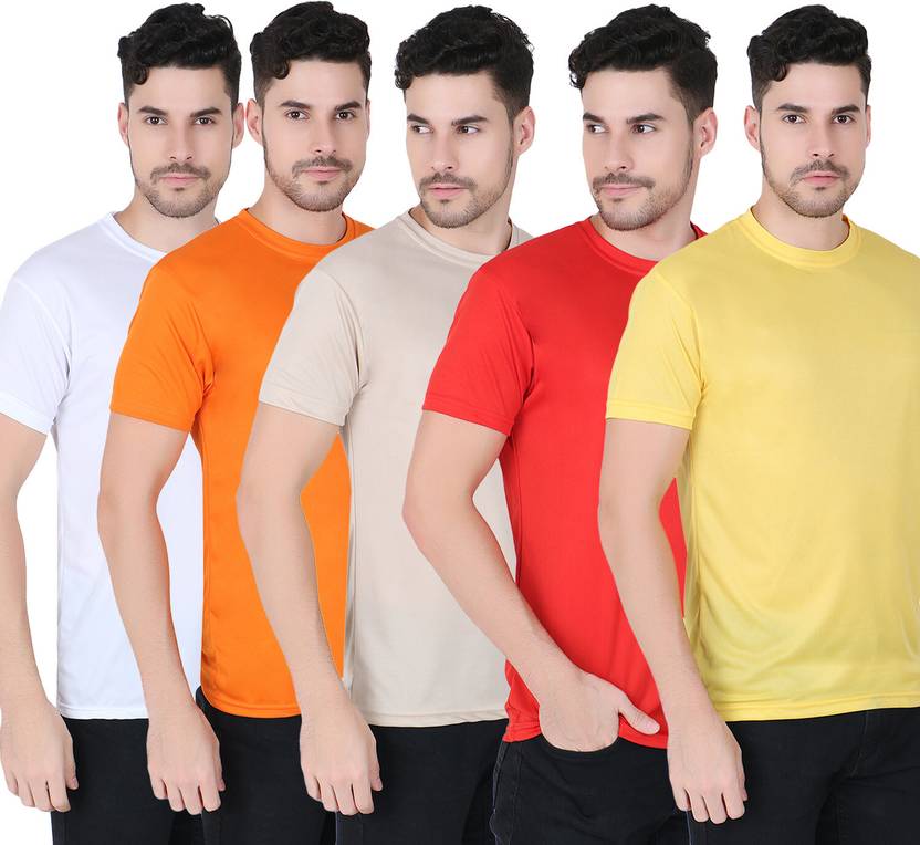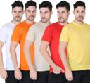FABSHORE Pack of 5 Men Solid Round Neck Polyester Multicolor T-Shirt