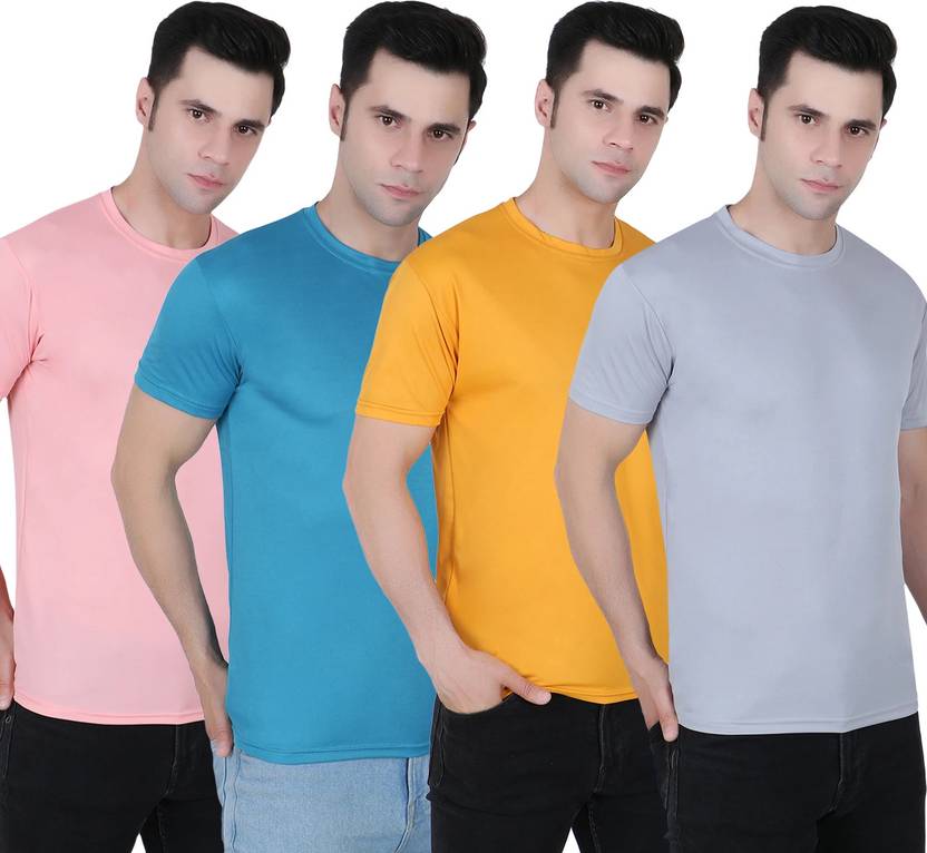 FABSHORE Pack of 4 Men Solid Round Neck Polyester Multicolor T-Shirt