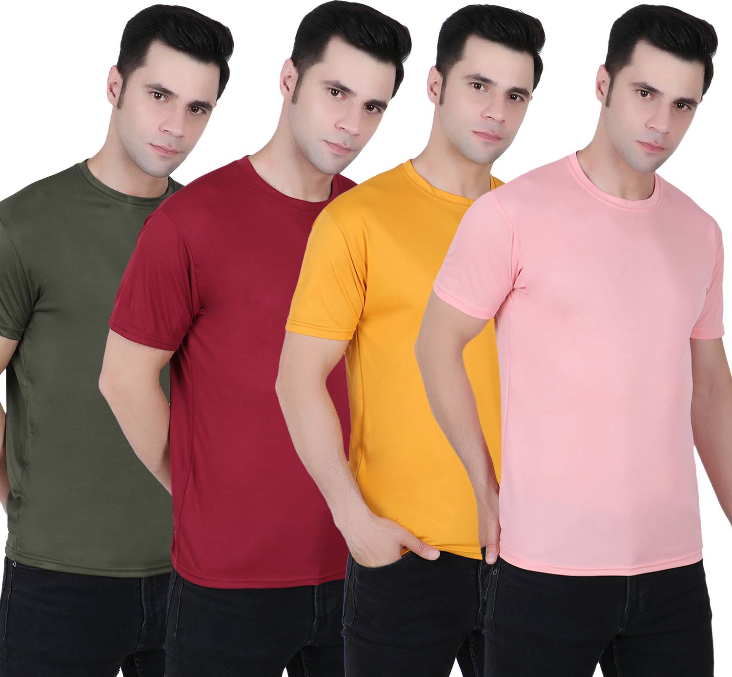 FABSHORE Pack of 4 Men Solid Round Neck Polyester Multicolor T-Shirt