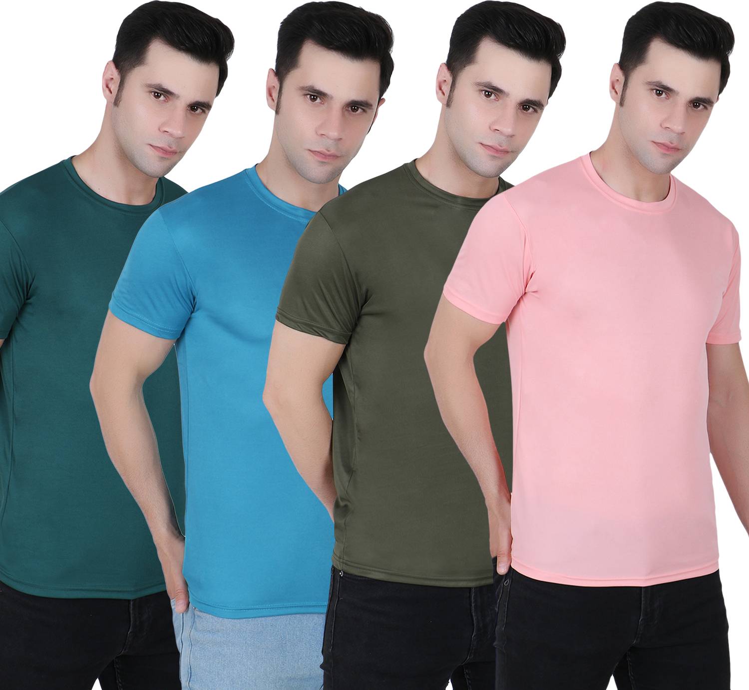 FABSHORE Pack of 4 Men Solid Round Neck Polyester Multicolor T-Shirt