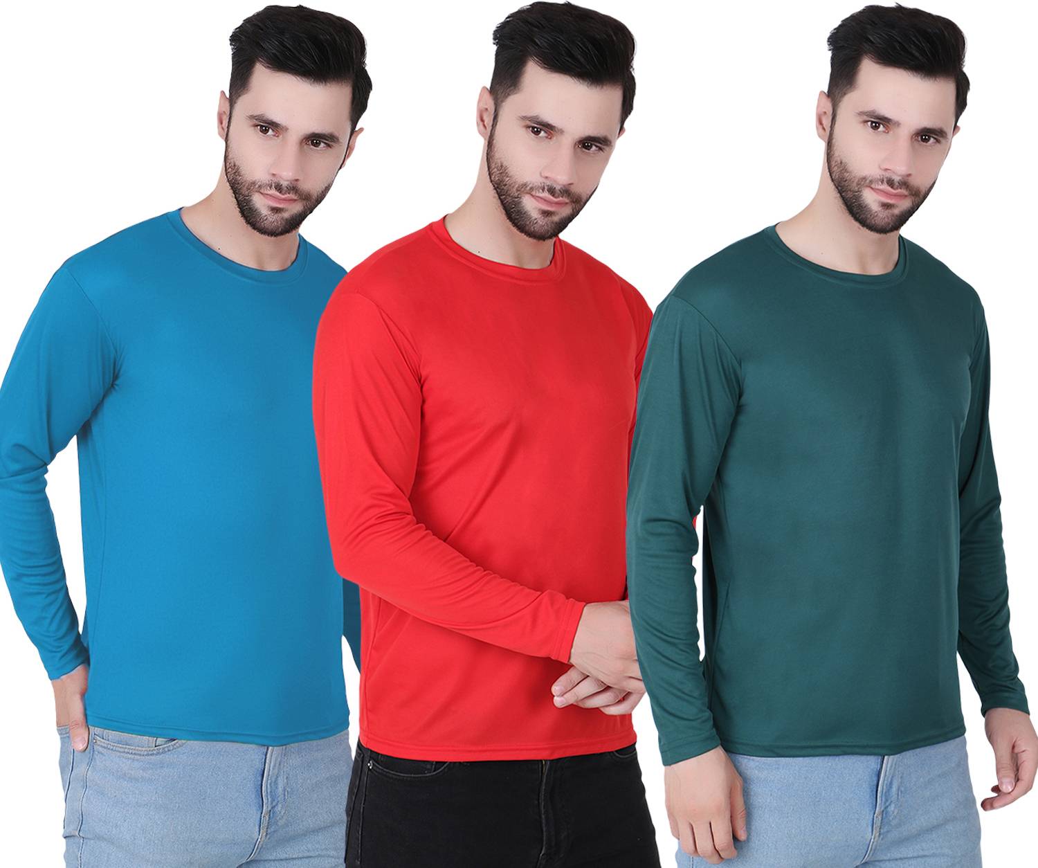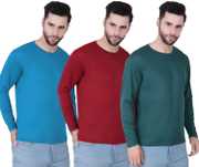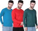 FABSHORE Pack of 3 Men Solid Round Neck Polyester Dark Green, Light Blue, Red T-Shirt