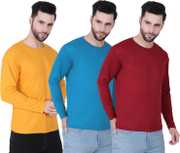 FABSHORE Solid Men Round Neck Dark Green, Light Blue, Red T-Shirt