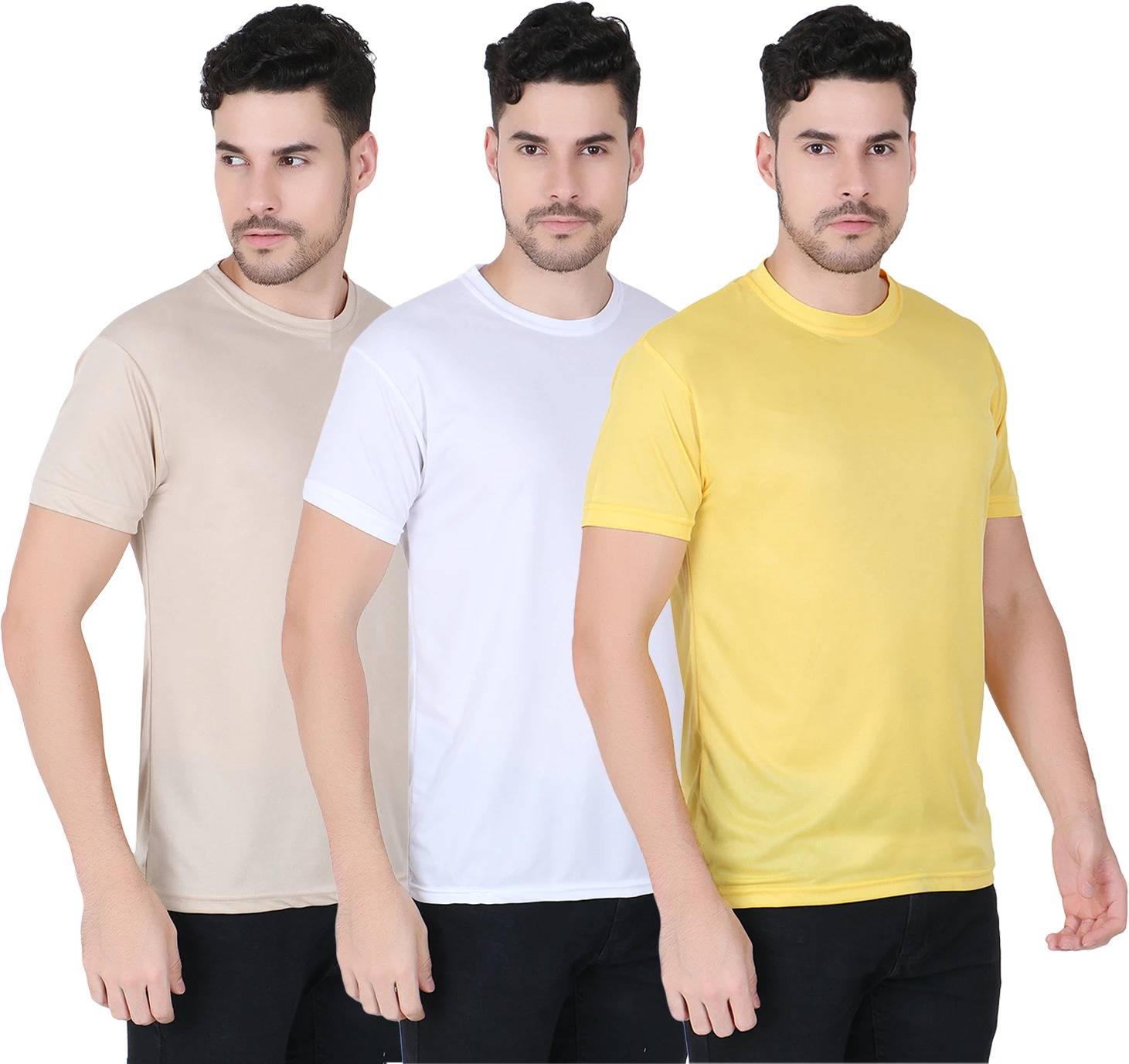 FABSHORE Pack of 3 Men Solid Round Neck Polyester Multicolor T-Shirt
