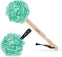 Duo Pack - Bath Brush Body Back Scrubber With Wooden Handle For Bathing With Round Loofah