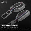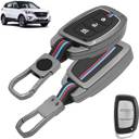 COMPATIBILITY: Designed for Hyundai 3-button smart keys – compatible with Creta, Venue, Elite i20, i20 N Line, Grand i10 NIOS, Aura, Verna, Xcent, Exter. MATERIAL: Premium Aluminium Alloy frame combined with a soft silicone body for superior strength, flexibility, and long-lasting durability PROTECTION: Protects your car key from scratches, drops, dust, and daily wear & tear while maintaining full button functionality. DESIGN: Sleek black colour with a modern, sporty look that enhances the premium feel of your car key. PERFECT FIT: Precisely molded for a snug and secure fit, ensuring easy access to buttons without signal interference. EASY INSTALLATION: Simple DIY installation using the included screwdriver, no professional help required. BOX CONTENTS: 1 × Key Cover, 1 × Keychain, 1 × Screwdriver.